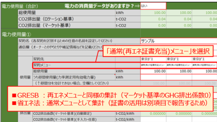 【参考】非化石証書を自社で調達している場合の入力方法
