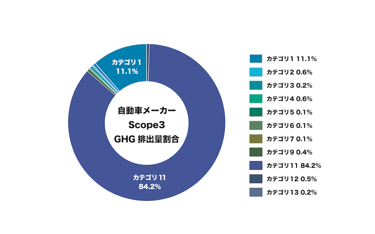 自動車メーカーのGHG排出量を削減するためには、Scope 3のカテゴリ1とカテゴリ11のGHG排出量の削減に重点を置く必要があります。