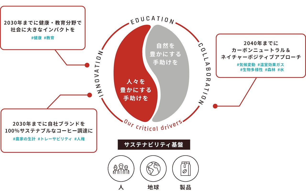 「2030年までに自社ブランドを100%サステナビリティなコーヒー調達に」の2軸で取り組んでいます。