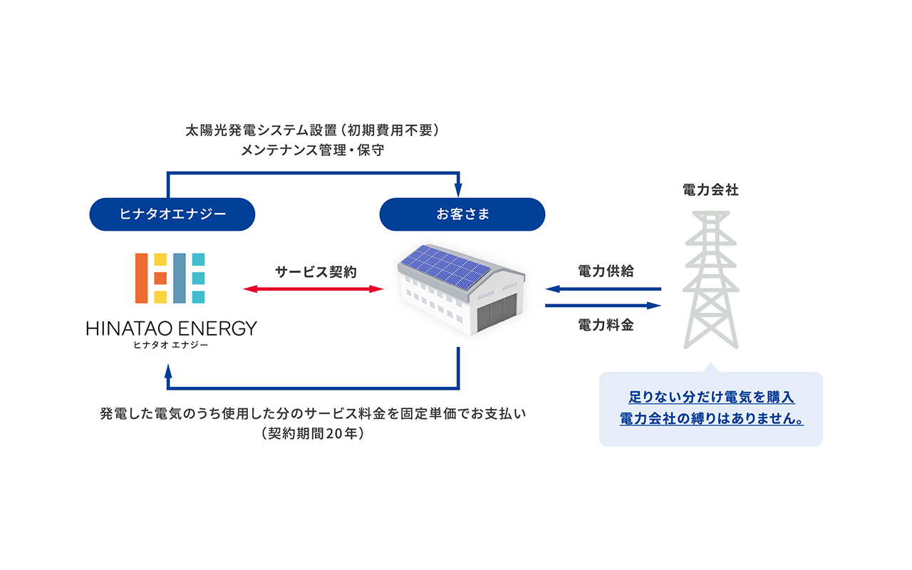 ヒナタオエナジーで導入されているPPAモデルのイメージ。