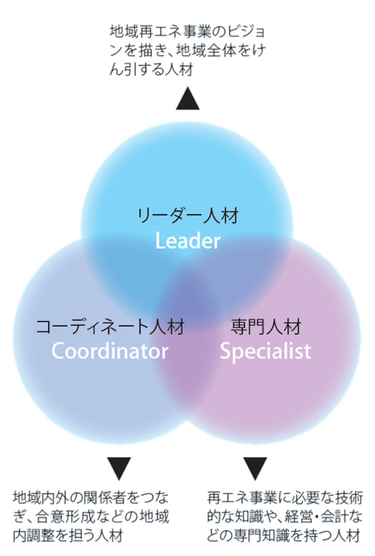 地域脱炭素実現に必要とされる3タイプの地域中核人材。
