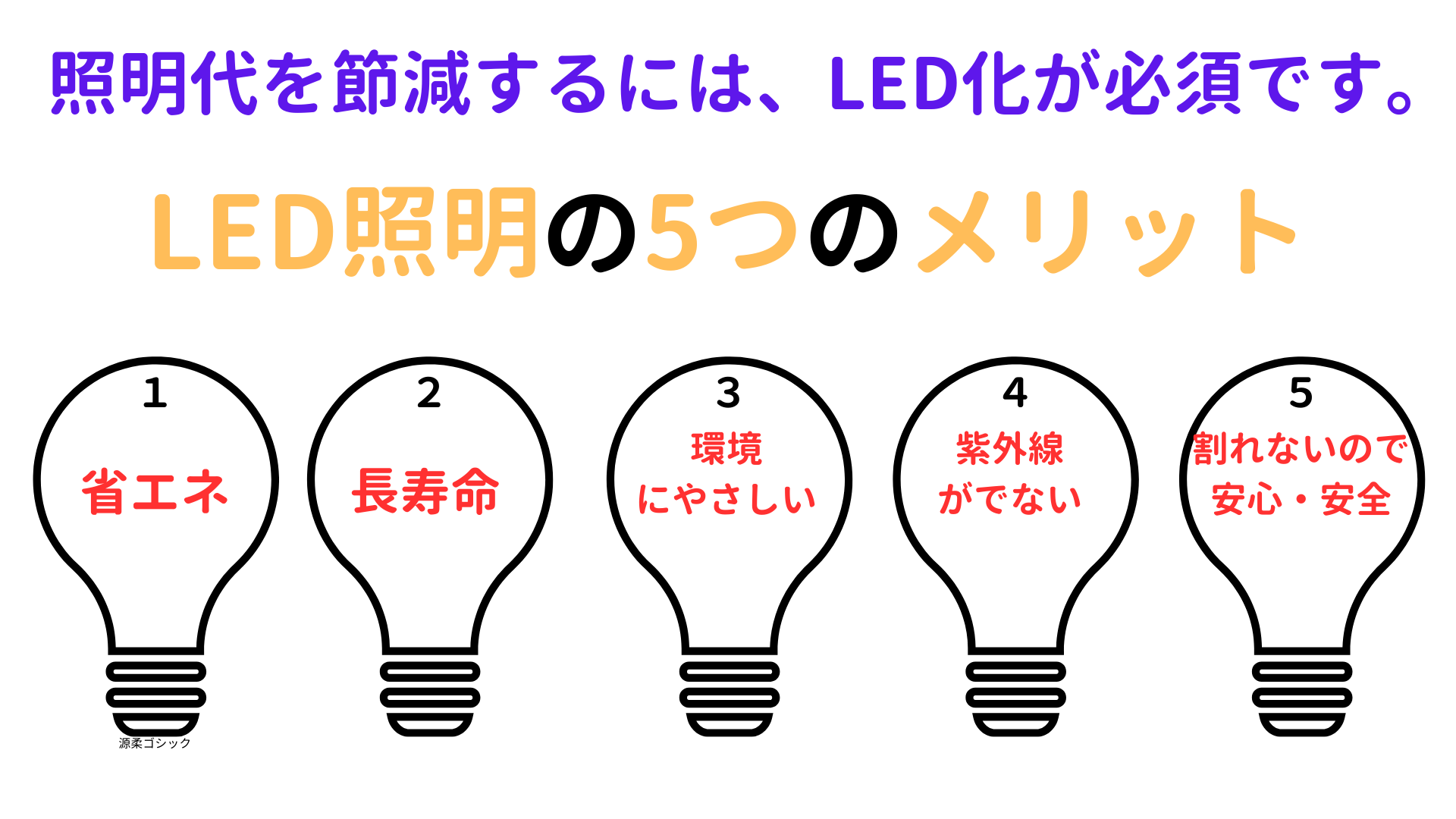 ただし、近年では需要の高まりにともなって、LED電球の価格は下がりつつあります。複数を導入する場合も以前のような高コストではなくなっており、改めて検討したい項目です。