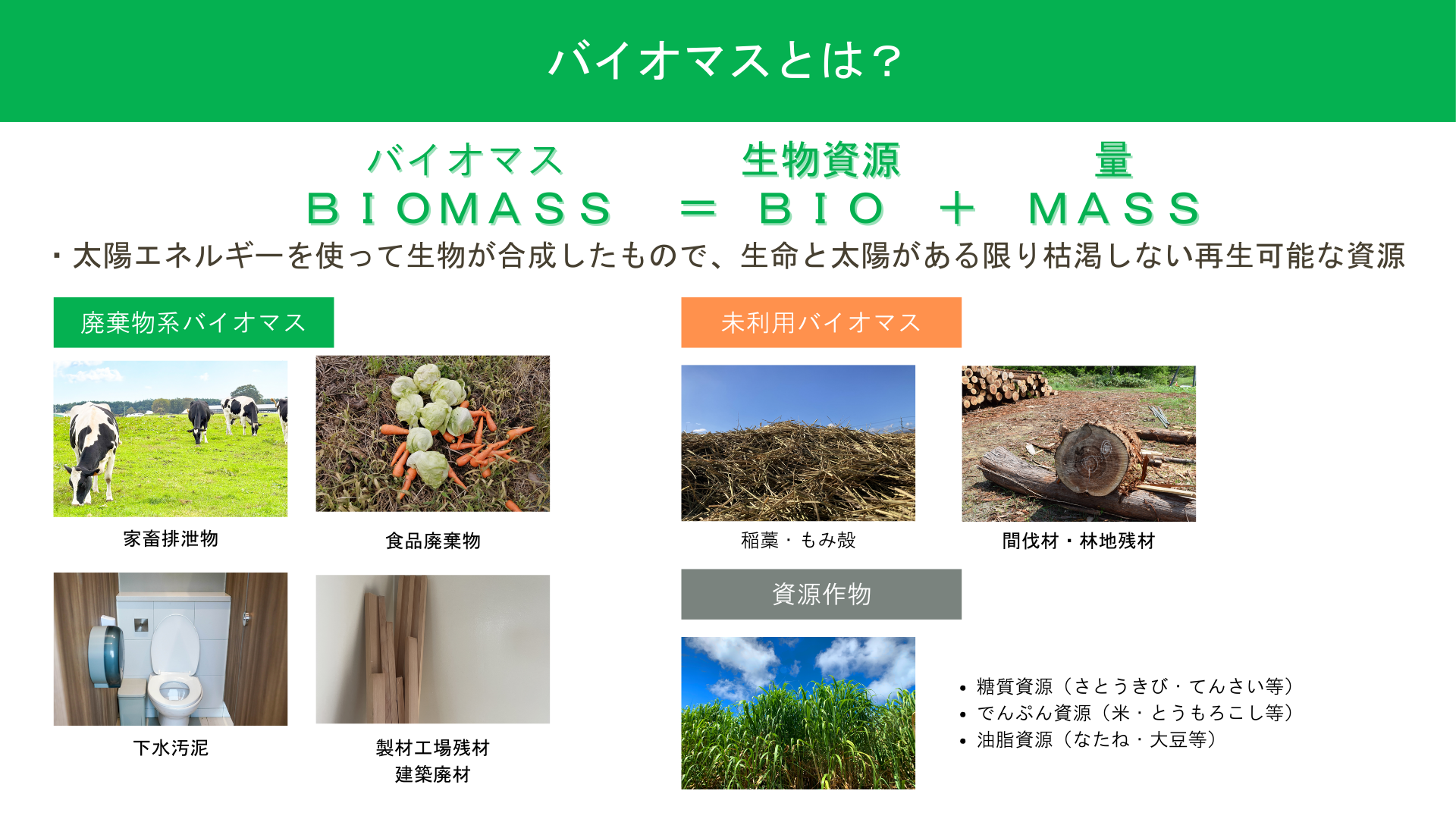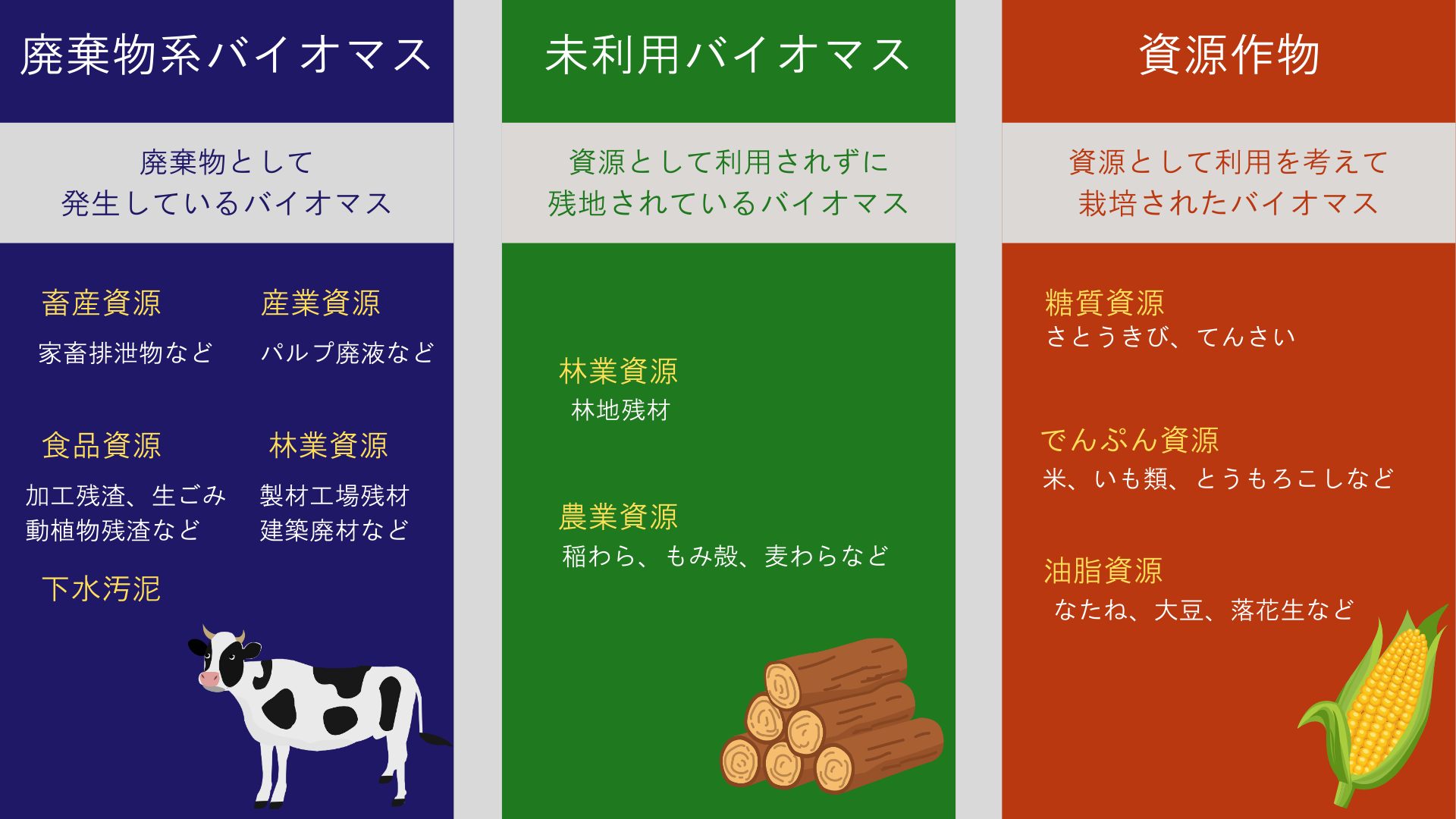 バイオマスの種類は3つ