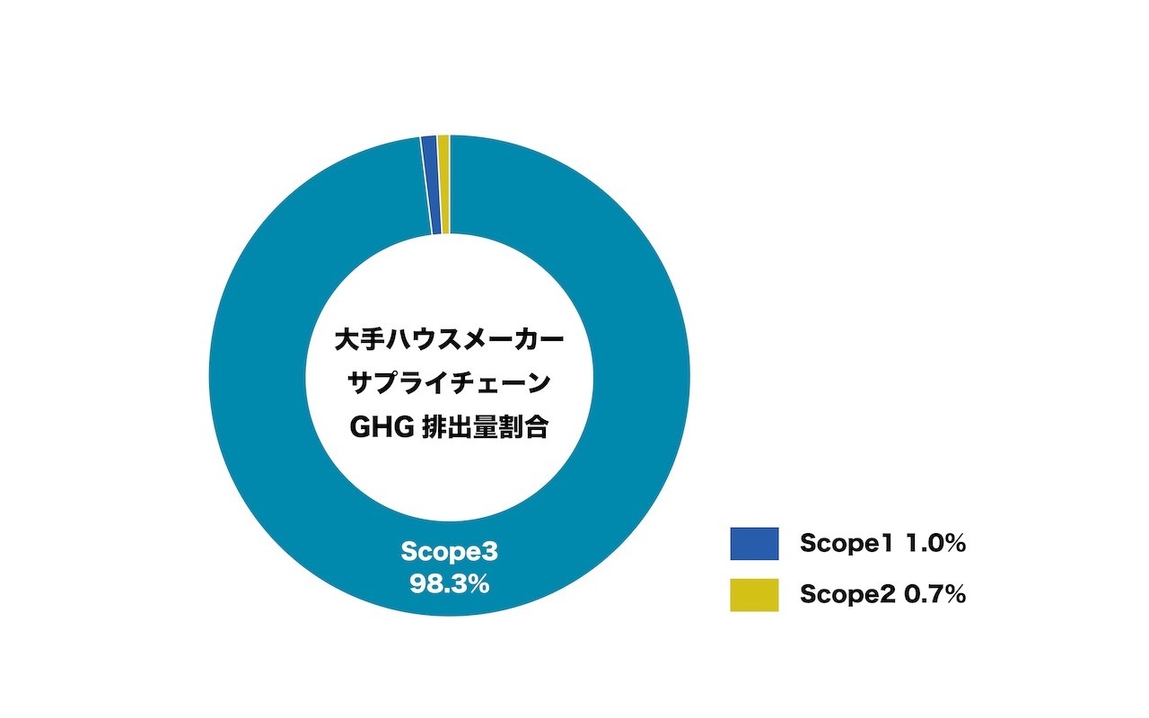 さらに、カテゴリ12「販売した製品の廃棄」に伴うGHG排出量の割合が全体の10%以上あり、廃棄の際にも多くのGHGを排出しています。この3つのカテゴリで全GHG排出量の約95%を占めているため、ハウスメーカーがGHG排出量を削減する際にはこの3つのカテゴリのGHG排出量の削減方法を重点的に検討することが重要と言えます。すなわち自社の削減努力よりも他社を含めたサプライチェーンでGHG排出量の削減を行うことが重要です。